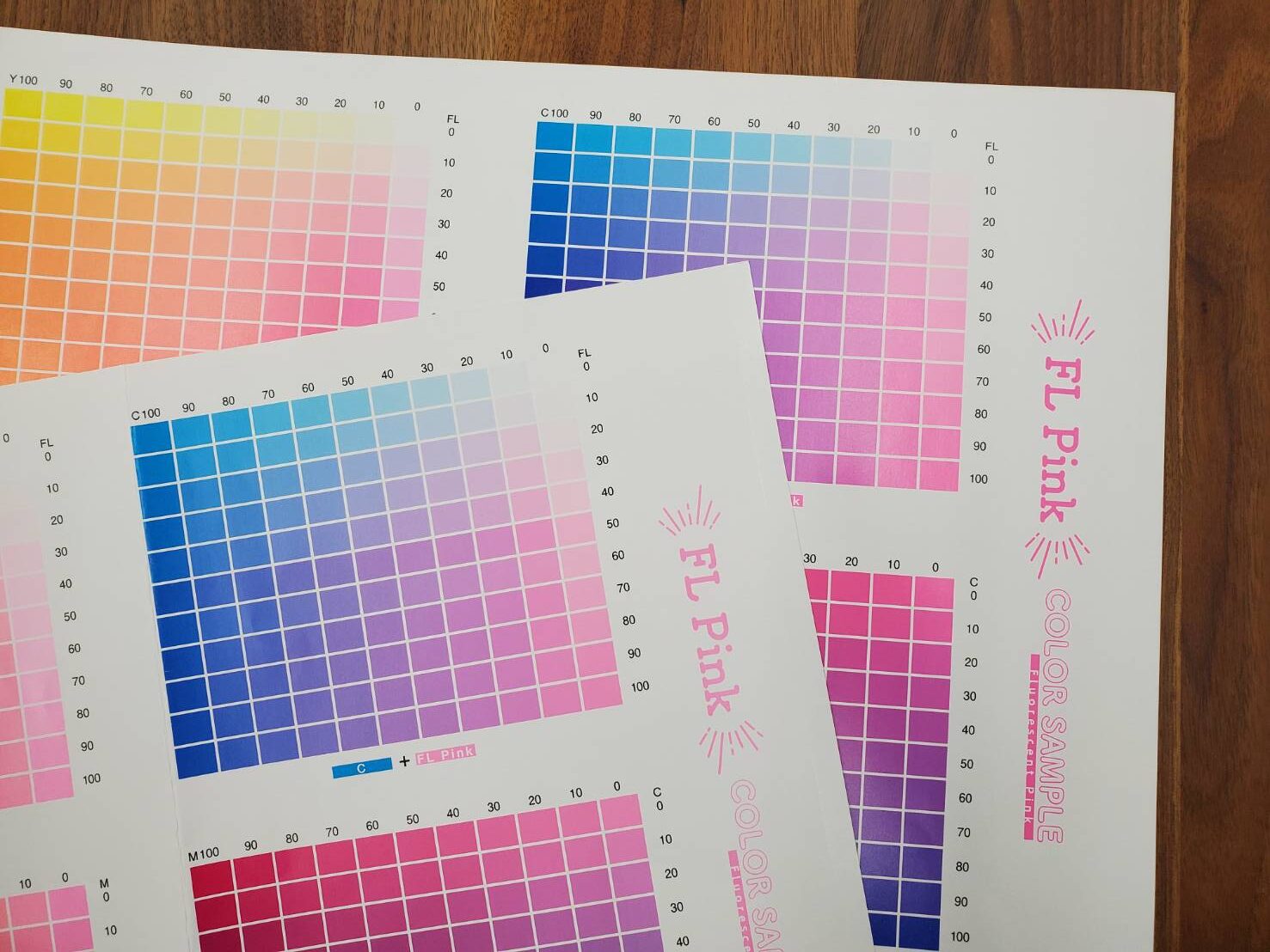 蛍光ピンクインキの印刷実験 印刷Lab.で行うインサツビトによる印刷実験。今回はHPインディゴ7Kの蛍光ピンクのイン…