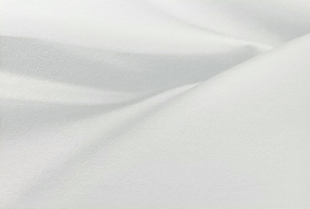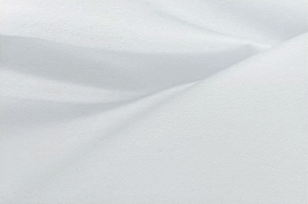 今回はホワイトインキとシルバーインキの掛け合わせてパール調の表現ができないかという実験です。使用した用紙はヴァンヌーボVGスノーホワイトになります。この用紙は表面がざらっとしたラフな質感がありますが印刷された部分は光沢(グロス)感が出るといったような用紙になります。