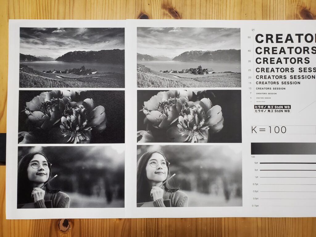 用紙によっても質感に差が出るため今回は3種類の用紙を使用しました。