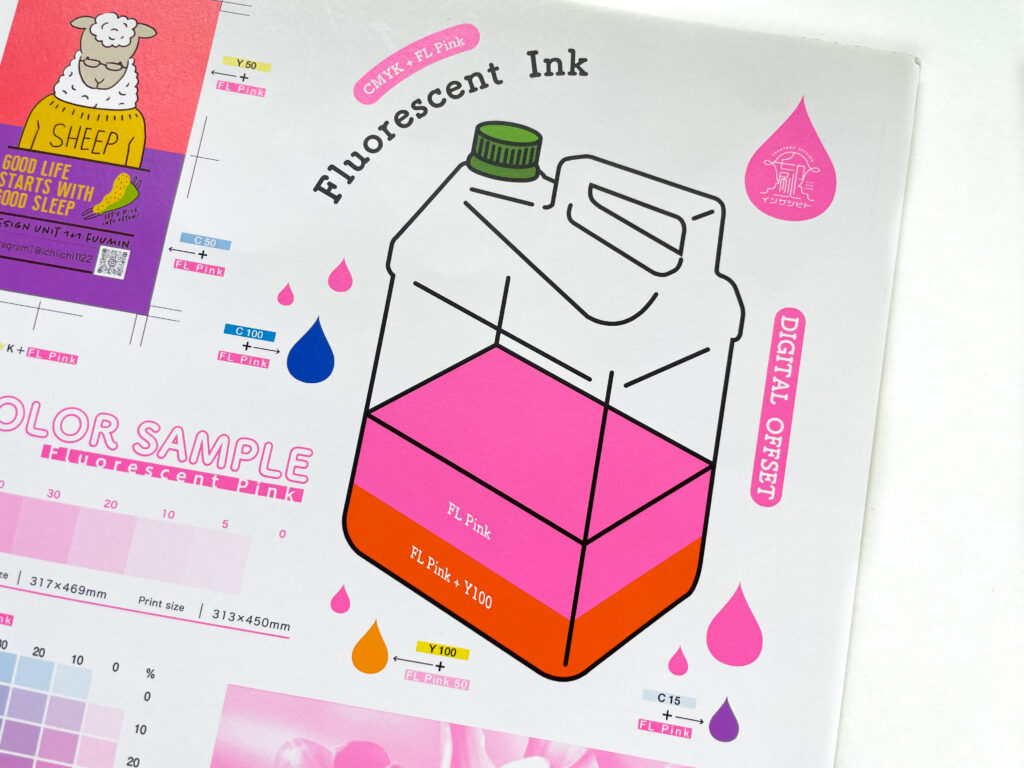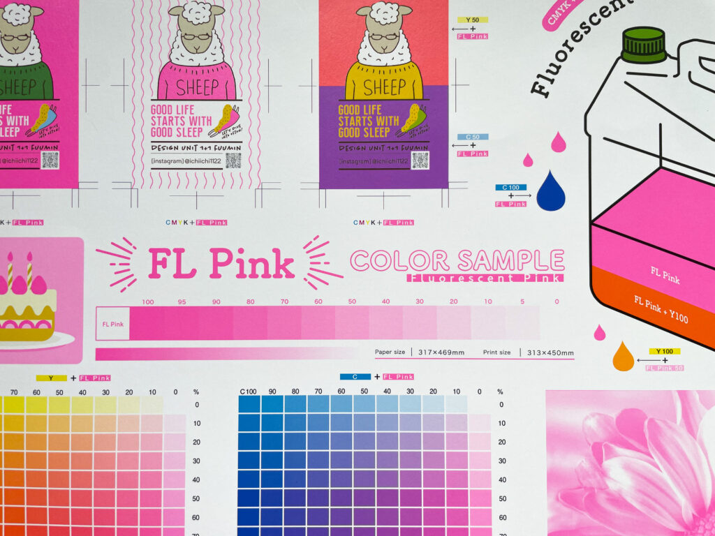 蛍光ピンク単体で使うも良し!CMYKと重ね刷りをして蛍光オレンジや淡い紫を表現をするも良し!この機会に蛍光ピンクで遊んでみませんか?ぜひたくさんのご参加をお待ちしております!!!