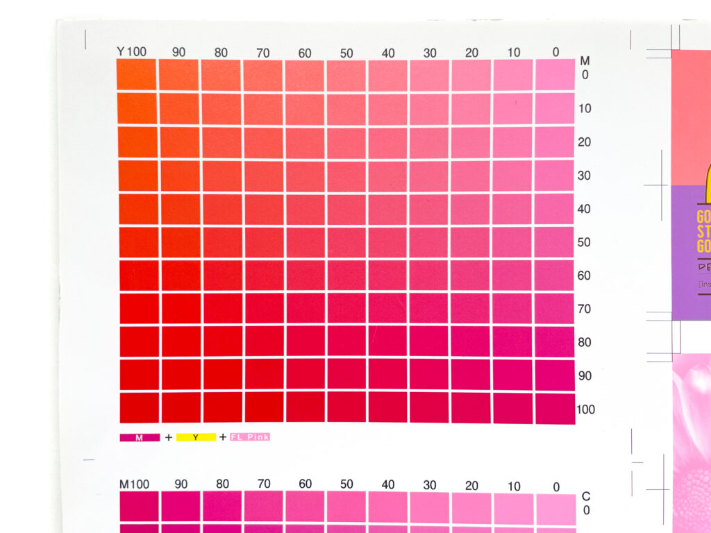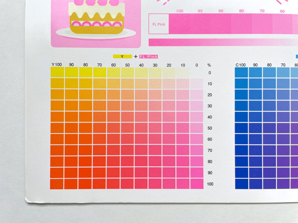 CMY+蛍光ピンクの重ね刷り