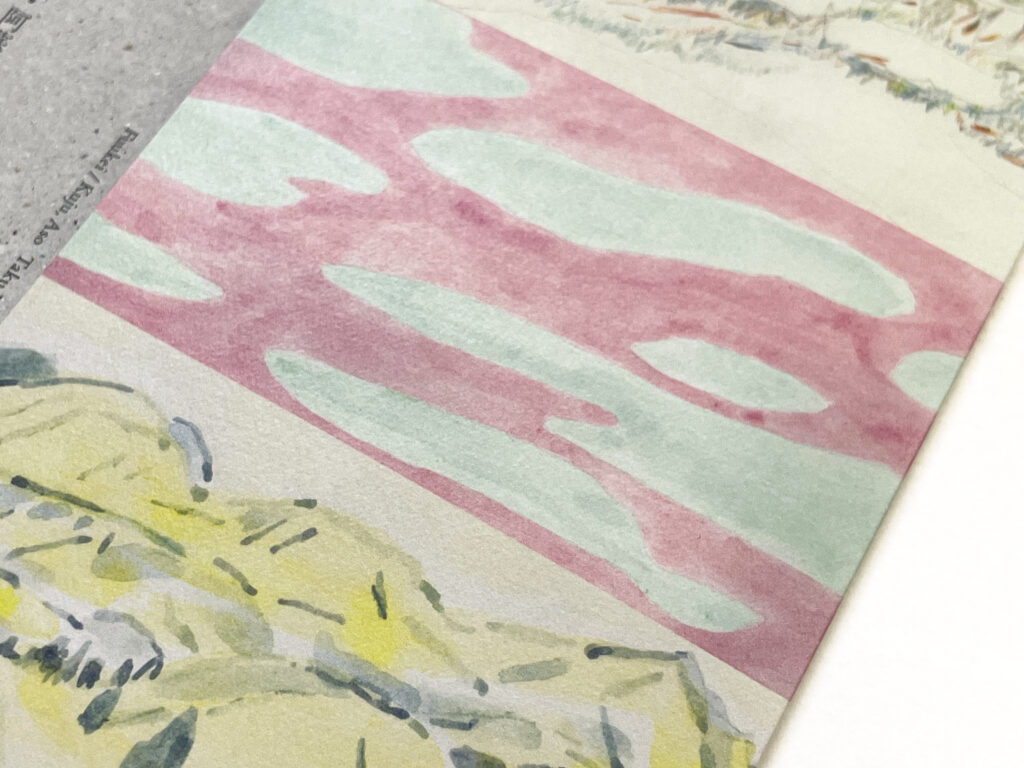 刷り出し時には、後藤さんが大分から広島の現場までお越しくださり、立ち会いのうえ確認していただきました。刷り上がりを見た後藤さんから「用紙の下地を生かすのも良いけど、白押さえを入れたらどう見えるか確認できますか?」とご相談を受け、急遽白押さえ用データを作成。まずはホワイト1回刷りでテストし、続けて2回・3回刷りも試して比較しました。最終的には、「悩ましいですが、ホワイト3回刷りが一番絵の色がきれいに出ていますね。光沢感も気にならないし、他との差異も面白いです」とのことで、ホワイト3回刷りに決定。現場で柔軟に調整しながら進められるのは、インサツビトとデジタルオフセット印刷ならではの強みだと感じました。