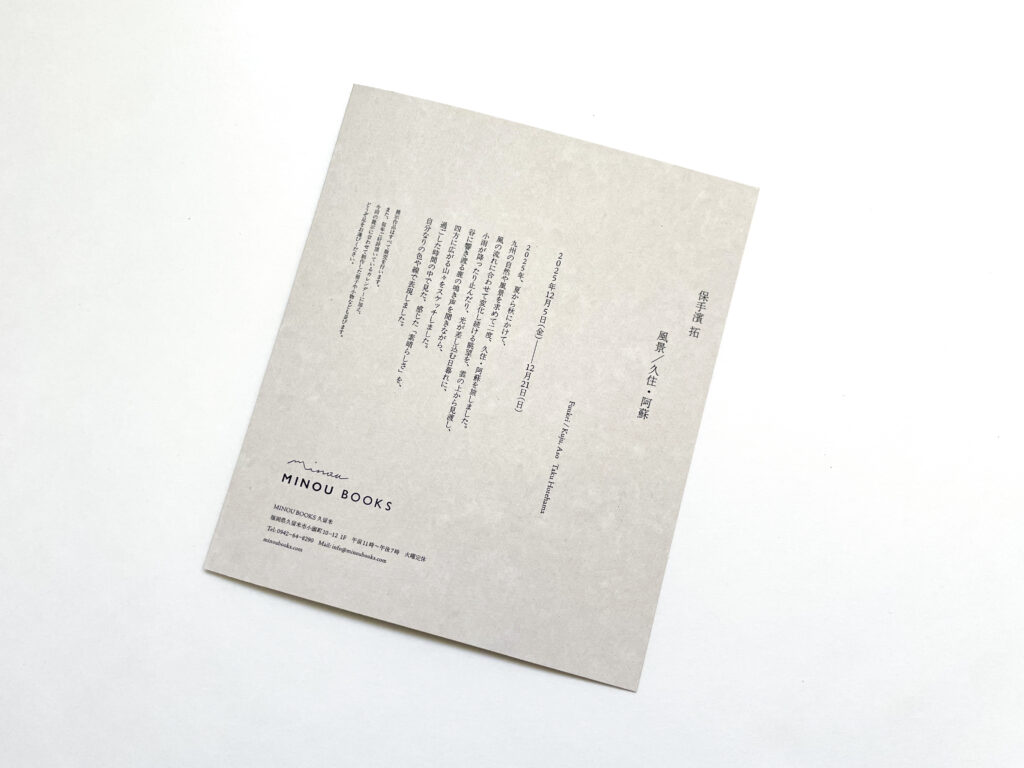 保手濱 拓 原画展「風景/久住・阿蘇」告知DM