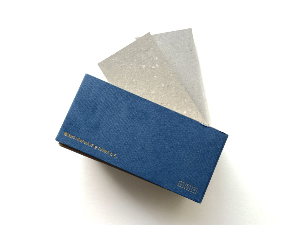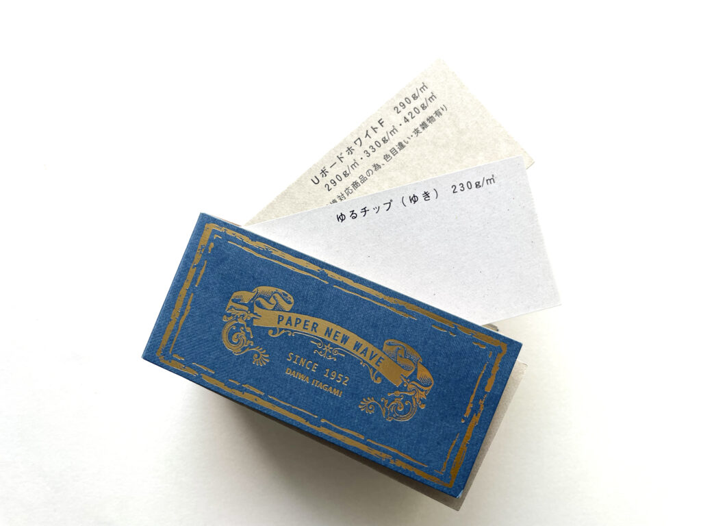 そこで代替案として、大和板紙さんの「CLOUD GRAY」も候補に挙がりましたが、斤量的に二つ折りには向かない可能性があり、最終的に「UボードホワイトF」を採用することになりました。