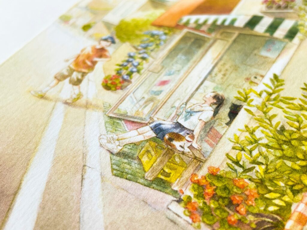 今回ご相談はイラストレーターの火詩さんから。ご自身の初個展を告知するDMの印刷したいとの事で、クリエイターズセッション企画 大阪編に当選され、そのテストプリントの仕上がりを見られたのがきっかけでした。絵柄面を原画の色に近づけさせたいとの事でRGB再現の「Color Up」を試してみたいとの事。そして用紙はご本人からのご希望で、ヴァンヌーボV スノーホワイトとミニッツGA スノーホワイトのどちらかにしたいと。まずは本紙色校から行いました。そして送付した色校正紙と原画を見比べていただき、火詩さん側で画像を再調整。そして再入稿していただき、原画もこちらへ送付していただきました。その補正作業がお上手で、あとは印刷機側の微調整で原画に近い色を再現することができました!まさに原画がそこにあるようなキレイな仕上がりに出来たと思います!!!