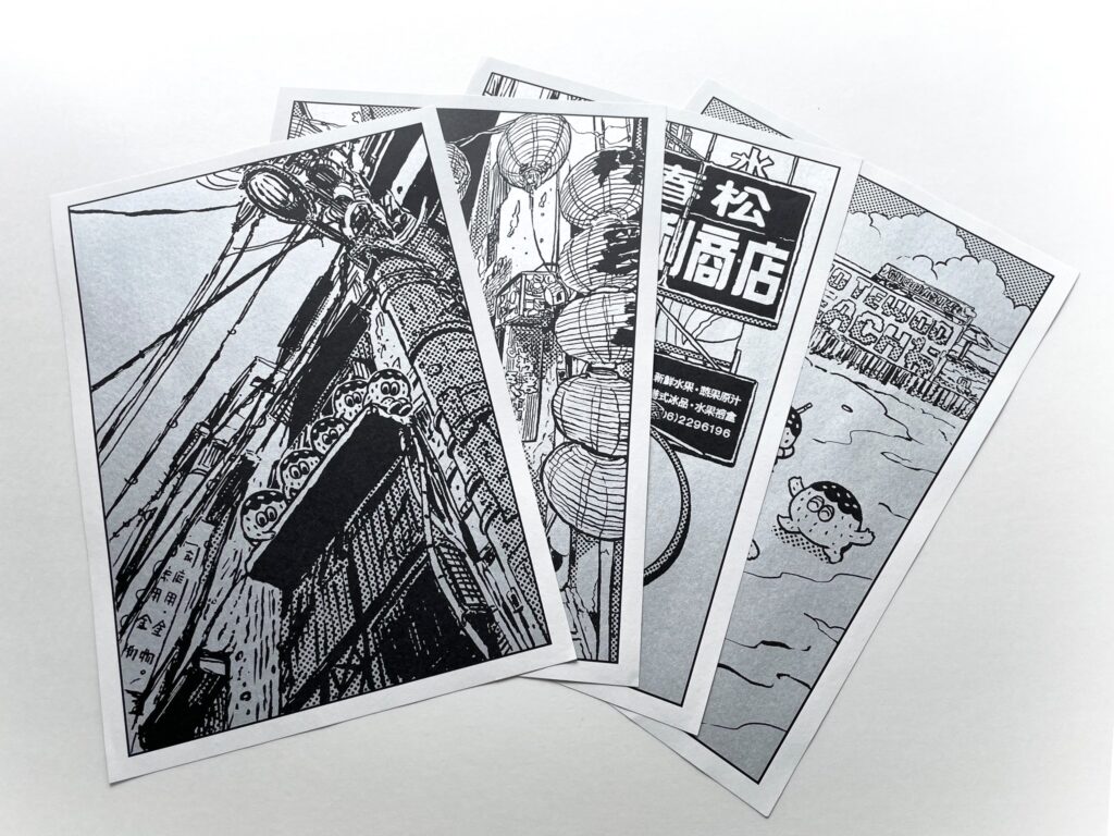 以前「Danchiman」の作品集をご発注いただいタダユキヒロさんより新たな作品作りのご相談がありました!2023年12月1日からタイのバンコクで開催されるアートブックフェア「BANGKOK ART BOOK FAIR 2023」(Instagram)でデビューさせたいということで、クリスマスや正月のイメージでシルバーインキを使った作品づくりが出来ないか?とのご相談でした。3種の作品を見させていただき、こちらからシルバーインキアレンジのご提案をさせていただきました。